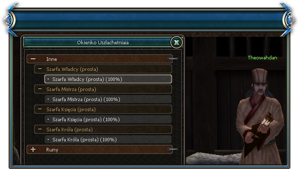 System szarf na serwerze jest standardowy. Szarfę (prostą) wytwarza się z delikatynch sukien. Absorpcja bonusów wynosi maksymalnie 25%.